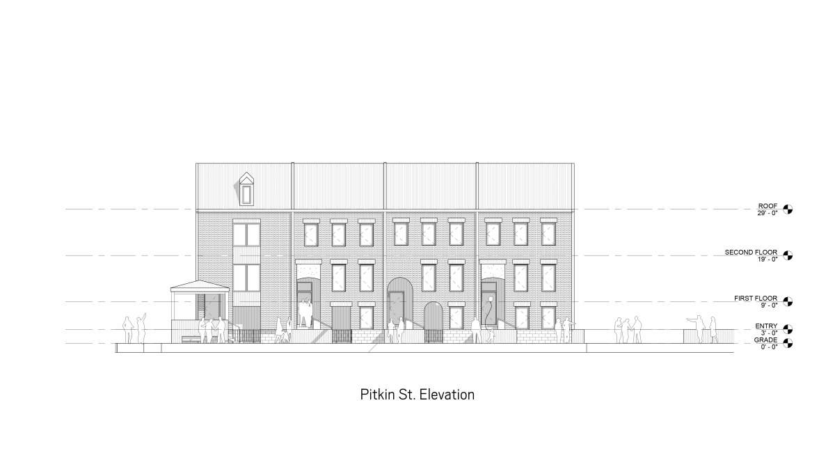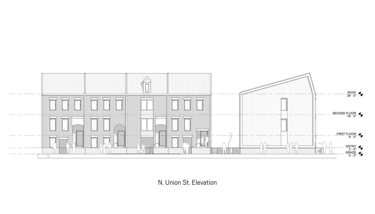 To reinforce neighborhood connectivity, the subdivision is configured into three rows of townhouses oriented toward Union Street, Charlotte Street, and Pitkin Street. The design preserves a green central commons, creating shared open space while ensuring active, pedestrian-friendly streetscapes consistent with the Rochester 2034 Comprehensive Plan. Parking is consolidated in a landscaped lot accessed from Pitkin Street, minimizing curb cuts and enhancing urban continuity.